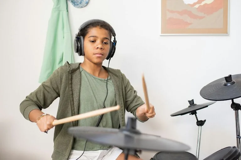 One of my most sound-sensitive students initially needed the room nearly silent. Today, he confidently plays full drum sequences and uses drumming to self-regulate when overwhelmed.